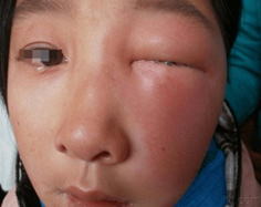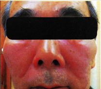 真皮の炎症で、顔面や下肢などに急速に広がる紅斑(境界明瞭で疼痛伴う)がみられます。