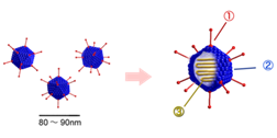 二重鎖直鎖状DNAウイルスで、カプシドは直径約80nmの正20面体の球形粒子をしています。