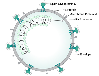 M(膜)タンパク質、E(エンベロープ)タンパク質として知られる4つのたんぱく質と、RNAにより構成