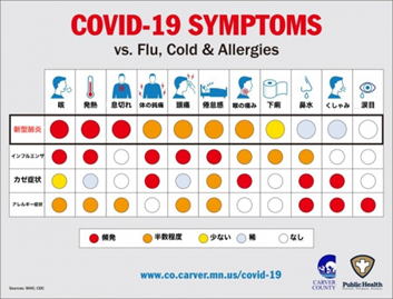 初期症状はインフルエンザや普通感冒と似ており、発症早期の段階では鑑別が困難である。
