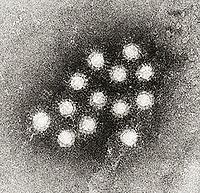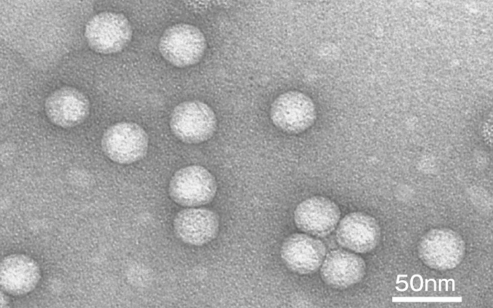 エンベロープを持たない一本鎖RNAウイルスで、直径約27nmの正二十面体の粒子です。