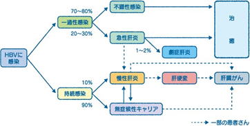 ですが、残りの10〜20%の人は慢性の肝炎が持続し、その中から肝硬変、肝がんになる人も出てきます。
