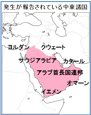 その他、地域での発生が確認されているのは、アラブ首長国連邦、ヨルダン、カタール、オマーン、クウェートなど