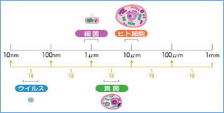 ウイルスは光学顕微鏡では観察できず、電子顕微鏡が必要となります。