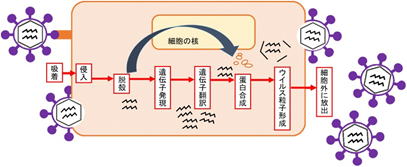 ウイルスは非常に小さく、感染した細胞内でその細胞の代謝機能を利用して自らを複製するため、