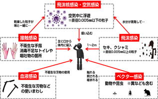 埃と一緒に、ウイルスを吸い込む場合でも感染します。