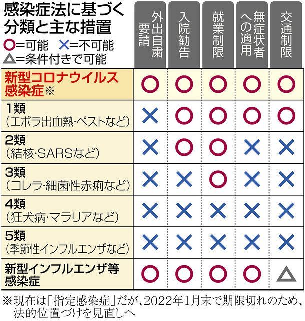 感染症の種類によって、強制的な入院勧告や就業制限など感染拡大を予防するために行われる措置が異なります。