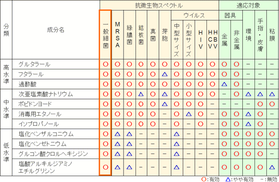(2)消毒薬の強さによる分類