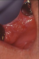 腫瘍は増殖するにつれ深部の筋層あるいは歯槽部、下顎の粘膜に波及し、また顎骨の吸収をきたすこともあります。