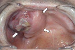 臨床症状は多彩で、腫脹あるいは腫瘤、潰瘍を形成したり、疼痛、歯の動揺、鼻づまりなどを伴います。