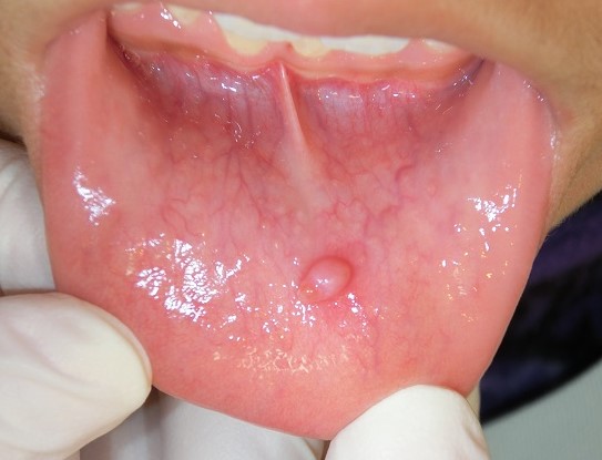 口腔粘膜に多数存在する小唾液腺に関連して生ずるものを粘液瘤(mucocele)といいます。
