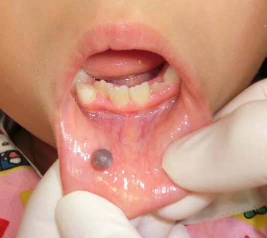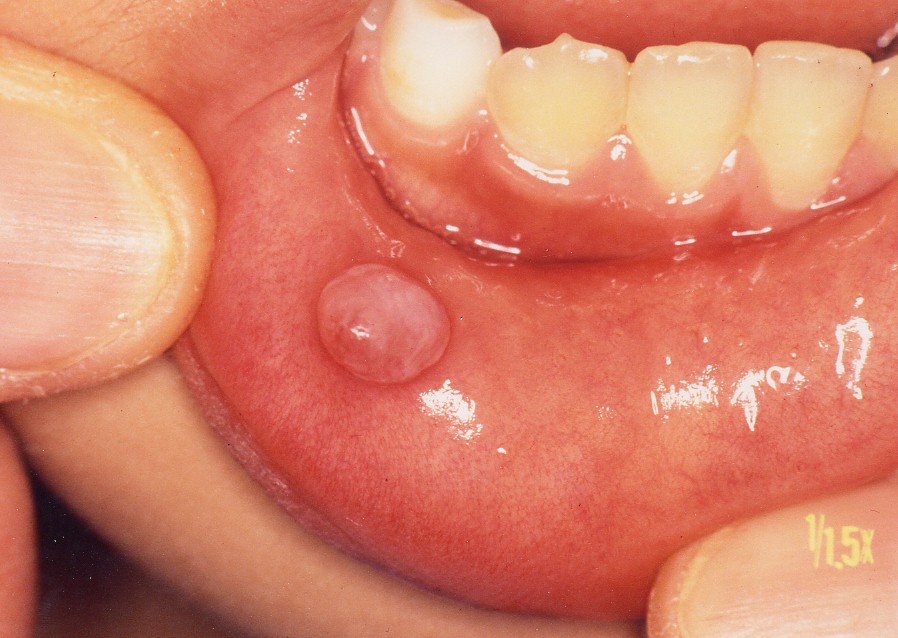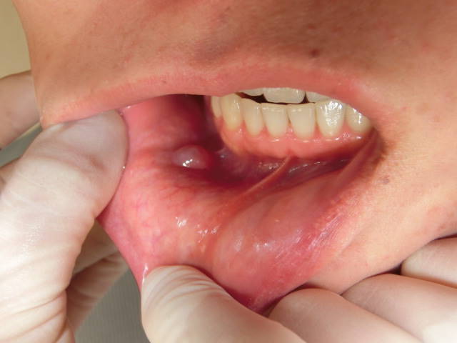 ほとんどが下唇に発症しますが、時に舌下部、頬粘膜にも見受けられます。