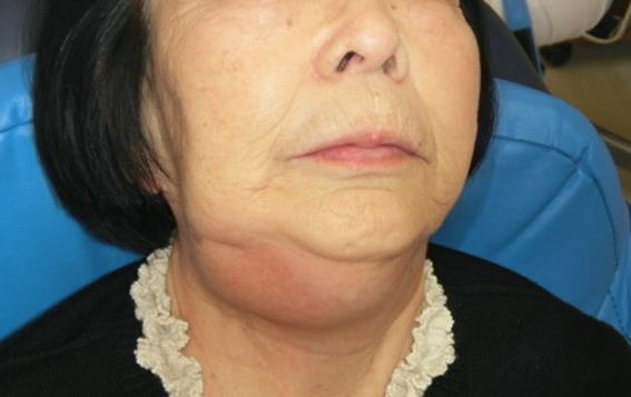 | 症例−2:口底炎から顎下部に進展した症例 (72歳女性) |