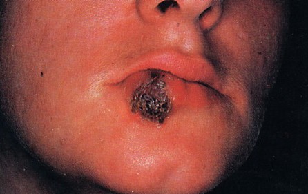 トレポネーマが侵入した部位(陰部、口唇部、口腔内)に塊を生じます。