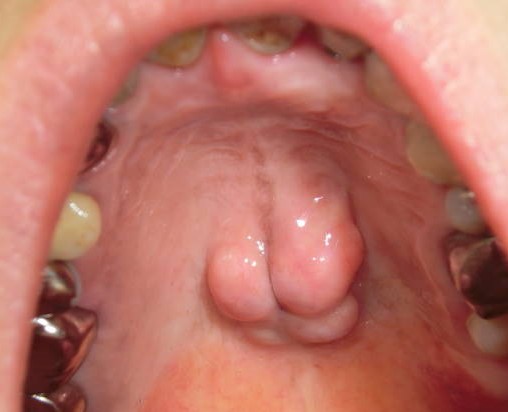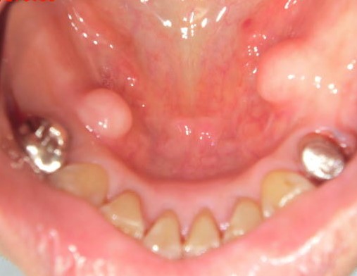 正中口蓋部(口蓋隆起)や、下顎骨小臼歯部舌側面(下顎隆起)に好発します。