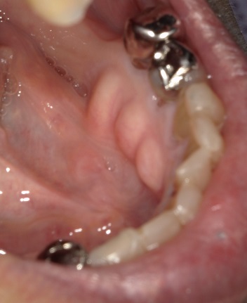 過剰な下顎隆起は義歯の製作、着脱などに大きな支障となります。