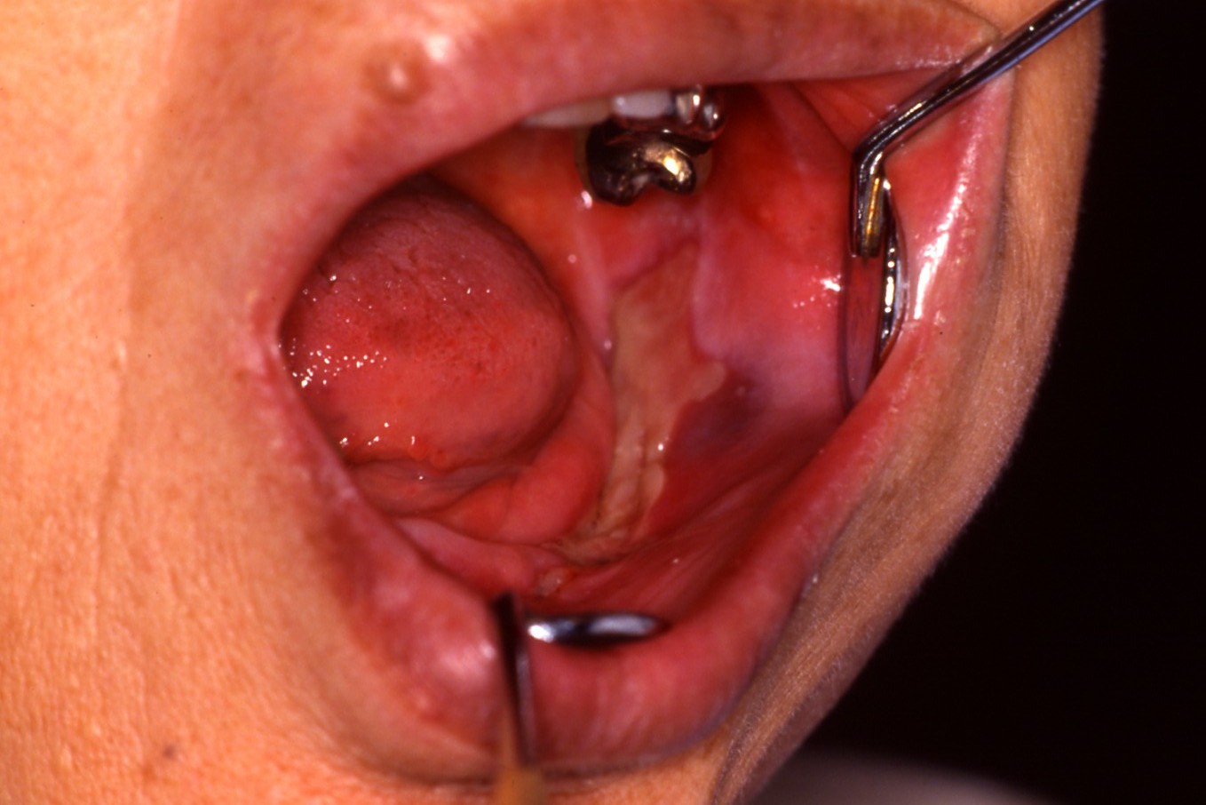 症例1:総入れ歯による褥瘡性潰瘍。義歯調整で治癒します。