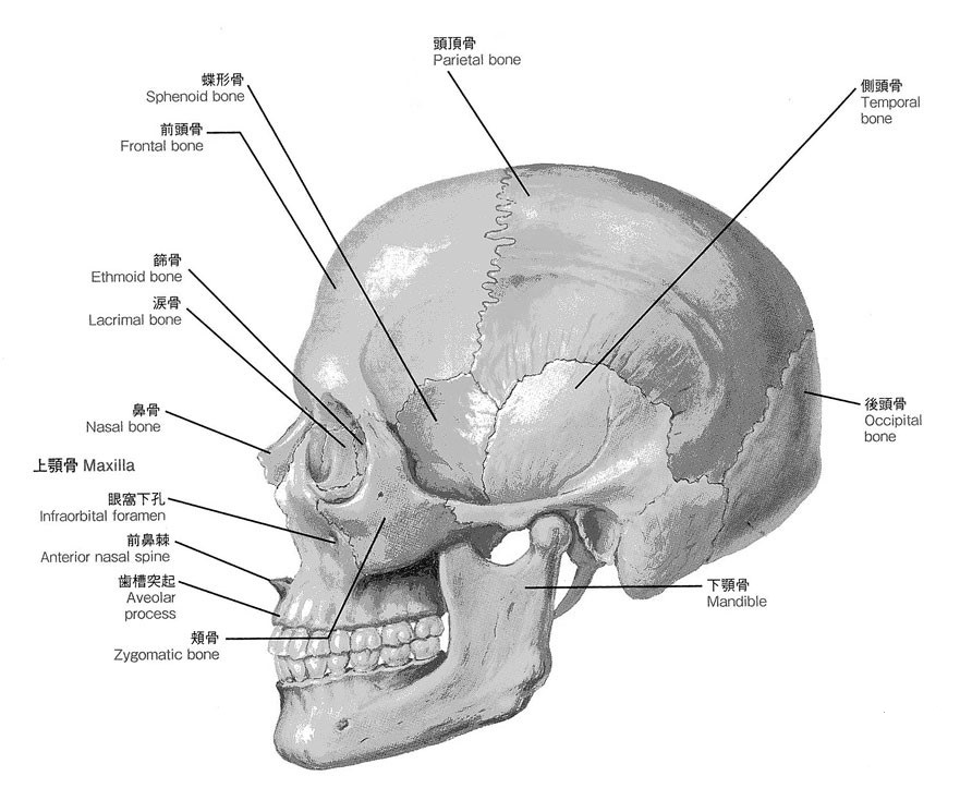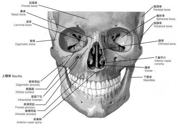 上顎骨は、顔面の中心において大部分をなし、左右対称に1対存在し、正中で縫合している骨の事です。