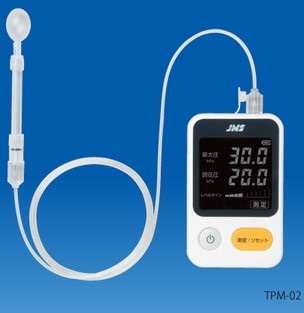 舌圧測定器(JMS舌圧測定器 TPM-02 )につなげた舌圧プローブを、舌と口蓋との間で随意的に最大の力で