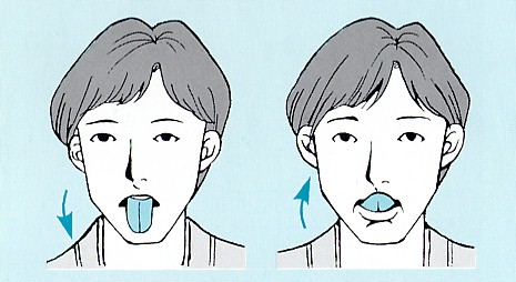 舌を前方に大きく突き出した後、しっかりと後ろに引く。