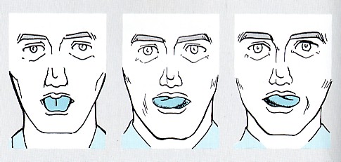 舌を左右の口角につけ、スプーンで抵抗をかける。