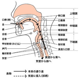嚥下時の食物の気管や肺への流入(誤嚥)の防止、発声などの機能を持ちます。