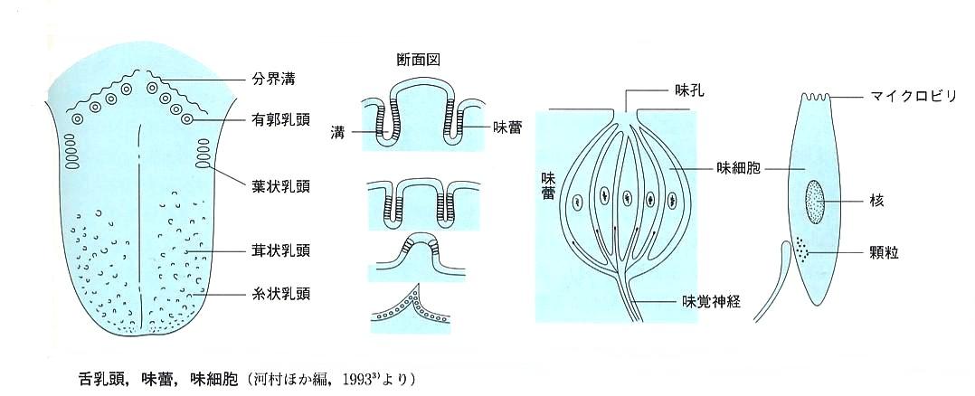 甘味(sweet taste )、酸味(acid taste)、 苦味(bitter taste)、 塩味(salty taste) という 4基本味の混合によって味が形成される。
