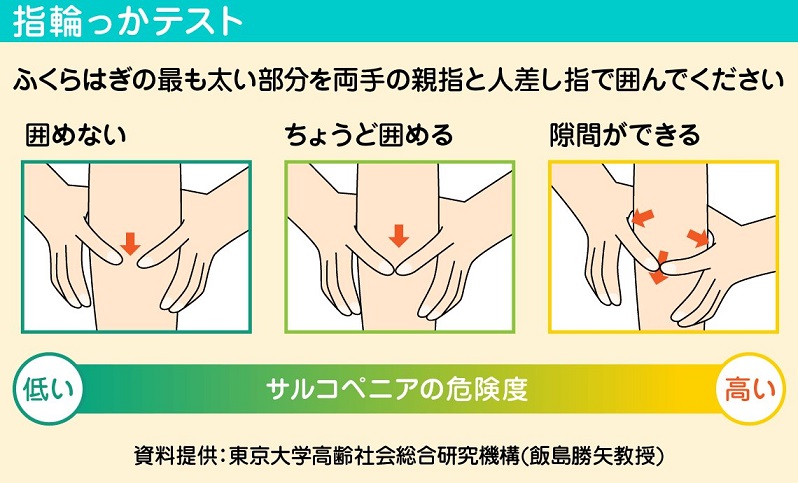 指で輪っかをつくり、ふくらはぎを囲んでチェックする。