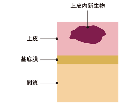上皮細胞と間質細胞(組織)を隔てる膜(基底膜)を破って浸潤していない腫瘍(癌)。