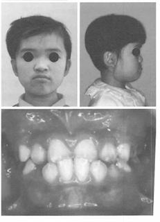 上顎歯列弓の狭窄叢生、高口蓋、反対咬合。
